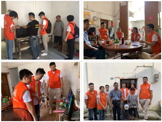 当天,慰问行共29人到达新平村,全体人员分为六组分别携带捐助物资对12户贫困户进行爱心慰问。在到户慰问过程中,每位义工身体力行,不仅把物资送到村民手上,还安装调试电动车、电视机等,让村民们能立即使用。同时,义工们与受助村民进行深入交流,了解村民需求,也让村民得到心灵的慰藉。