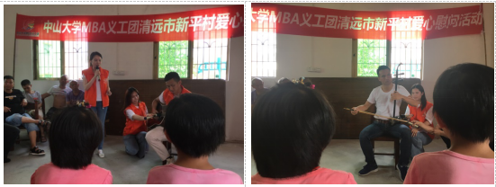 义工团的小伙伴还为村民们献上了精彩的节目,唱歌、跳舞、吉他弹唱、二胡独奏,把活动的气氛逐渐推向高潮。最后,在全体大合唱《歌唱祖国》的歌声中,活动落下了帷幕。
