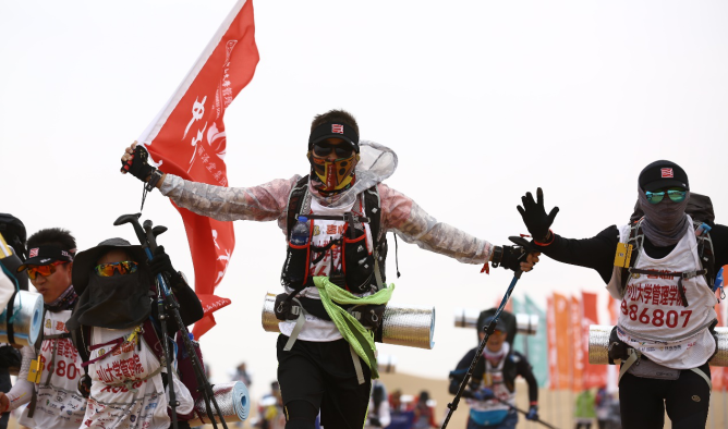 “个人的成绩在其次,团队的荣耀才是王者!队旗对于一支队伍来说,是一种方向的指引,也是队伍精神的体现。所谓‘人倒旗不倒’,当队员在比赛中彷徨的时候,看到队旗,就会给他们一些信心和勇气。而对于漫漫黄沙中前行的中大队员来说,这种意义就更加真切。” 70公里寸步不离,陈梁钰不仅在吃风、吃土、吃力的旗手岗位上守护住了管院的每一个人,同时他手中的旗帜也成为了其他院校落单队伍的航灯,帮助众多兄弟院校队员顺利完成比赛。“旗手只是扛旗的那个人,关键要看这面旗子体现的精神!”