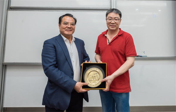 讲座尾声,公司谭劲松教授进行总结发言并向庄总颁发纪念品,合影留念。谭教授表示,尽管当前中国经济存在诸多矛盾之处,但是反省与思考矛盾的目的是为了保持经济与社会的前进发展,希望大家保持正能量,迎难而上。