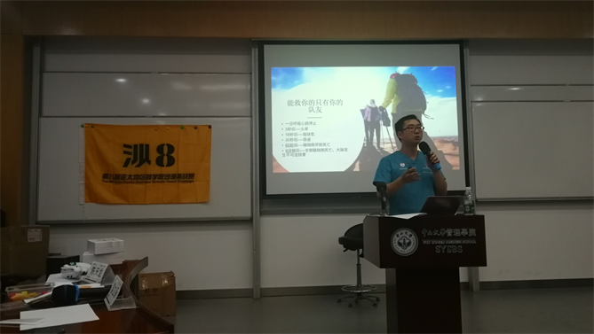 出征仪式后,中大管院为沙友定制了沙漠越野赛急救课程的实操培训,涵盖沙漠越野赛需要的急救知识,为参赛选手的安全保驾护航,更为即将启航的“飞龙们”打上了强心针!