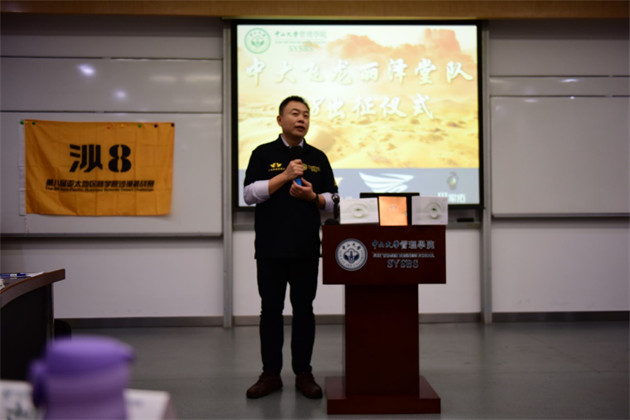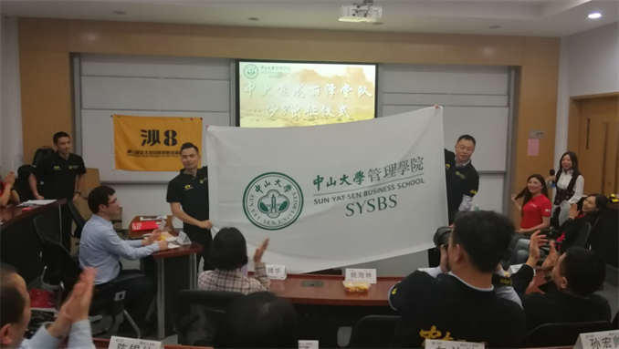 本次代表队出征受到了各界人士和员工的广泛关注,在装备和资金上均获得大力支持。第三届MBA理事会朱圣勇会长旗下的企业——广州丽泽堂集团冠名赞助了中大管院沙8战队,理事会、同学代表贾金华、曹连东、陈冲、刘瑰华、陈艳艳、吴汉洲、魏志杰、蔡诗洲等给予了无私的帮助。活动上,朱会长作为代表进行了精彩发言并预祝沙8战队取得理想的成绩,中大管院再攀高峰。