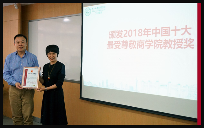 随后,姚主任为公司王永丽教授颁发了由世界经理人授予的“中国十大最受尊敬商公司教授奖”。