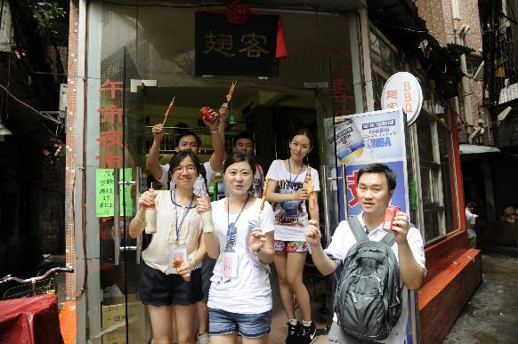 愿望是美好的,现实是骨感的,当同学们真正散落到原始森林般迷宫一样的校园里之后,瞬间没有了方向感,地图也排不上用场了,直接抓瞎。21组和35组的同学鸿运当头,各有一名在中大读度过本科的同学,直接担任人肉导航,有条不紊地朝一个个目标前进。不得不说,中大的同学太可爱了,期间各组成员纷纷成功觅得校园美女帅哥们的青睐,对于MBA新同学们提出的合影、留号码、摆POSE的要求一一应允,一定程度上降低了任务的难度。
