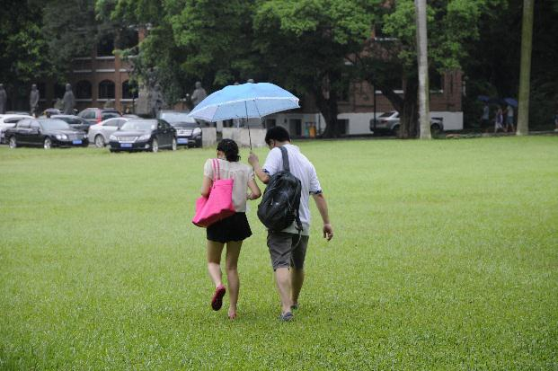 天公不作美,就在同学们满头大汗向一个个目标进发的时候,闷热了一个上午的广州终于下起了瓢泼大雨,这让各项任务完成的难度再次增加。雨水挡不住同学们的激情,大家继续坚定不移地采集任务目标、合影。一时间,中大校园里面充斥了一群顶着狂风暴雨在校道中穿梭前行的“猛男和女汉纸”,引得其他同学和路人侧目相看。
