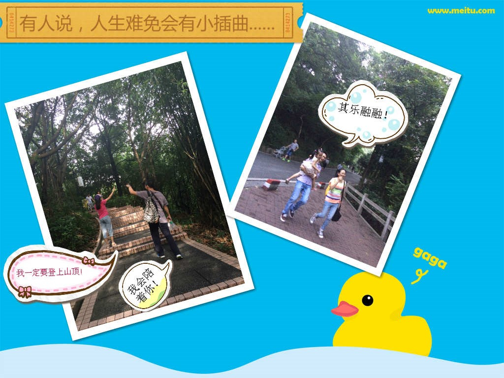 于是,在一个小雨转晴的日子里,2014FB班的小伙伴们如约来到有“羊城第一秀”之称的白云山。虽然山不高,但此山风景秀丽。那谁不是说过:山不在高,有“鲜”则灵。话说,那天的白云山,真的比往日更有灵气呢。