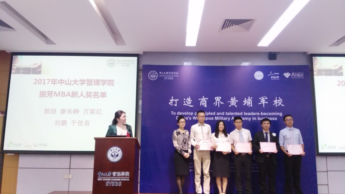 教师代表及新生代表发言后,进行2017年伟德国际victor1946振芳MBA奖学金新人奖及英语优异奖颁奖。刘静艳副经理及姚海林主任为获奖新生颁奖。新人奖获奖新生为:郭锐、廖长峥、万家红、刘鹏、于佳音、高宇、艾泽宇、钟韵、李志星、刘斯琦、黄梓仲、齐继承、沈玉婷、许鹏、廖生耀。英语优异奖获奖新生为:庄贤、艾泽宇。