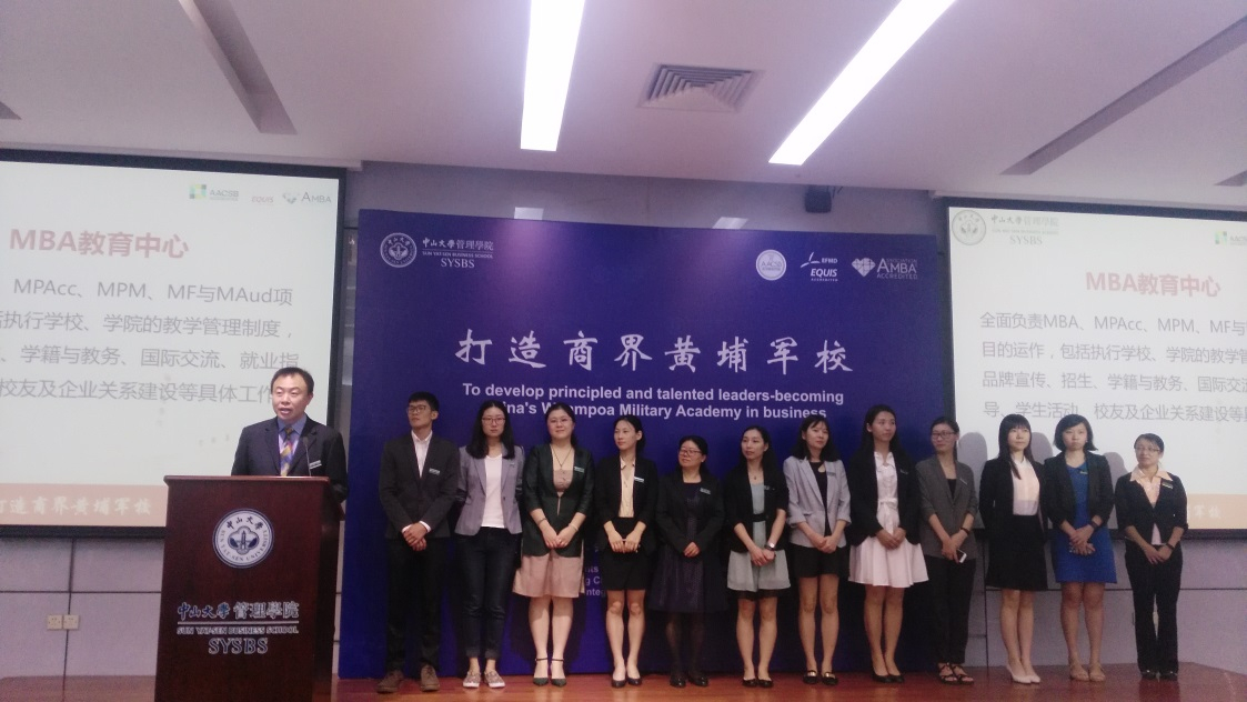 随后,姚主任跟同学们一一介绍在2年或者3年的可能获得的荣誉、职业发展服务、一对一职业生涯咨询服务、教学安排(全日制&PI MBA&MBA/ MPAcc)教学安排(讲座&实习)选课教学改革、注册管理、行为规范、校园交通管制、教学管理、考试管理、成绩考核及管理、论文管理及学前教育安排等。员工管理制度宣讲后,姚主任向同学们介绍了MBA教育中心组织架构图及全体老师,包括有教务主管田正芳老师、行政主管王锶老师、招生与对外事务主管张晓瑜老师、MBA教学管理--赖龙威老师、许倩莹老师、MPAcc/MPM/MAud/MF教学管理谭娜老师、国际交流与海外课堂徐倩老师、论文与校外导师戴维斯老师、招生与对外事务—招生丁婕老师、媒体与宣传黄晓丹老师、职业发展蔡妮娜老师、联合会和员工工作赵雯雯老师、员工工作张瑾老师。