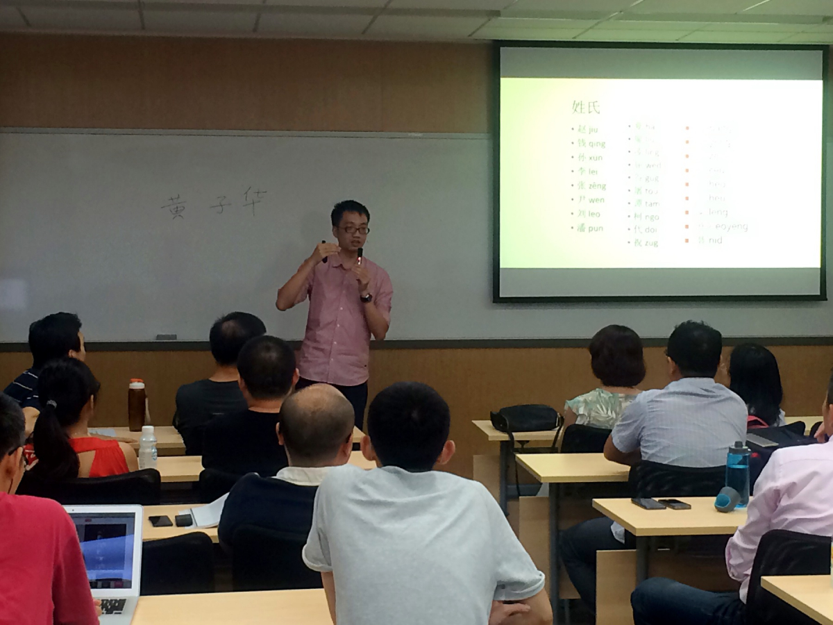 “我叫林刚,係中山人,好高兴认识大家,我好鬼死钟意你啊。”担任此次粤语角辅导老师的林刚是MBA2014FB的员工,在开课前的一番带有幽默色彩的粤语介绍,令在座的同学拍手叫好。