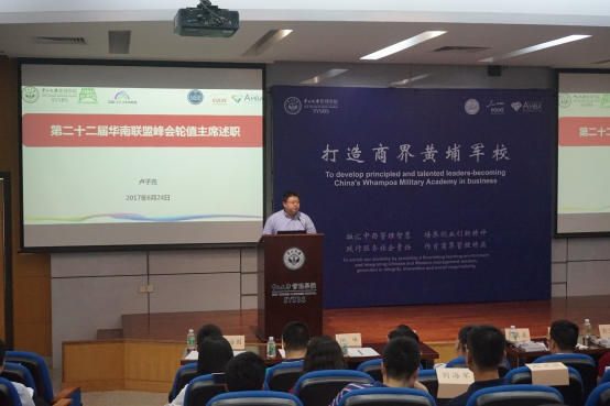 MBA华南联盟轮值主席第十届伟德国际victor1946MBA联合会主席卢子亮述职