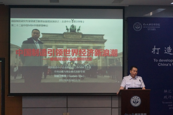 此外,上午峰会还邀请到重量级嘉宾广东电视台《解码百年企业》专栏主讲专家、德国百年企业经营研究第一人邱建卫教授分享主题“中国制造引领世界经济新浪潮—像德国百年企业那样经营”,以此探讨一带一路战略下的企业家思维应如何转变,以此适应瞬息万变的社会。