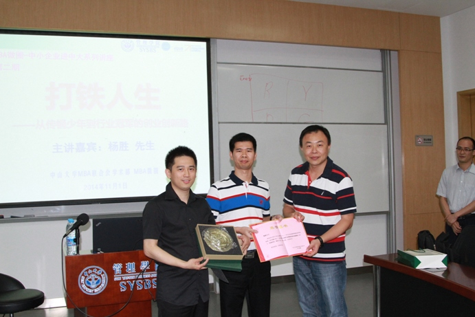 现场座无虚席,很多同学甚至站着听完全场演讲,这都缘于此次的讲座嘉宾——来自东莞市美高制罐有限公司董事长杨胜先生——的经历与魅力。杨先生获得“打铁先生”的名号不仅是因为他与铁有缘,更因为他的人生充满了坎坷。而正是凭着铁一般不屈不饶的精神,他才走出了一条从传销少年到行业冠军的创业、创新之路。