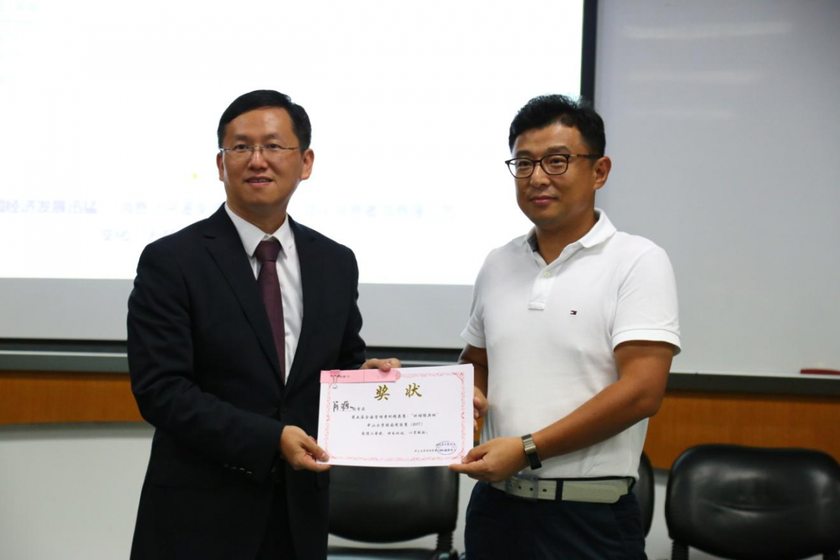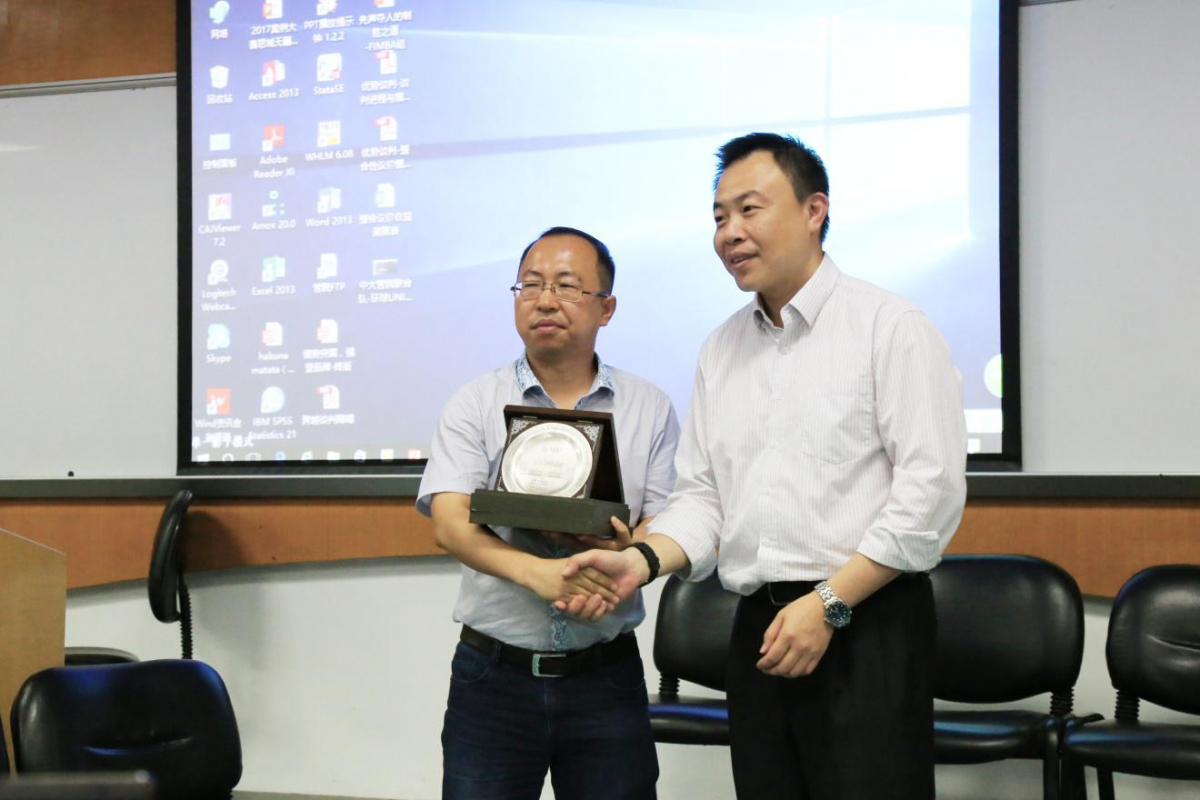 中大管院MBA教育中心姚海林主任为环球经典公司丁德政总经理颁发纪念品