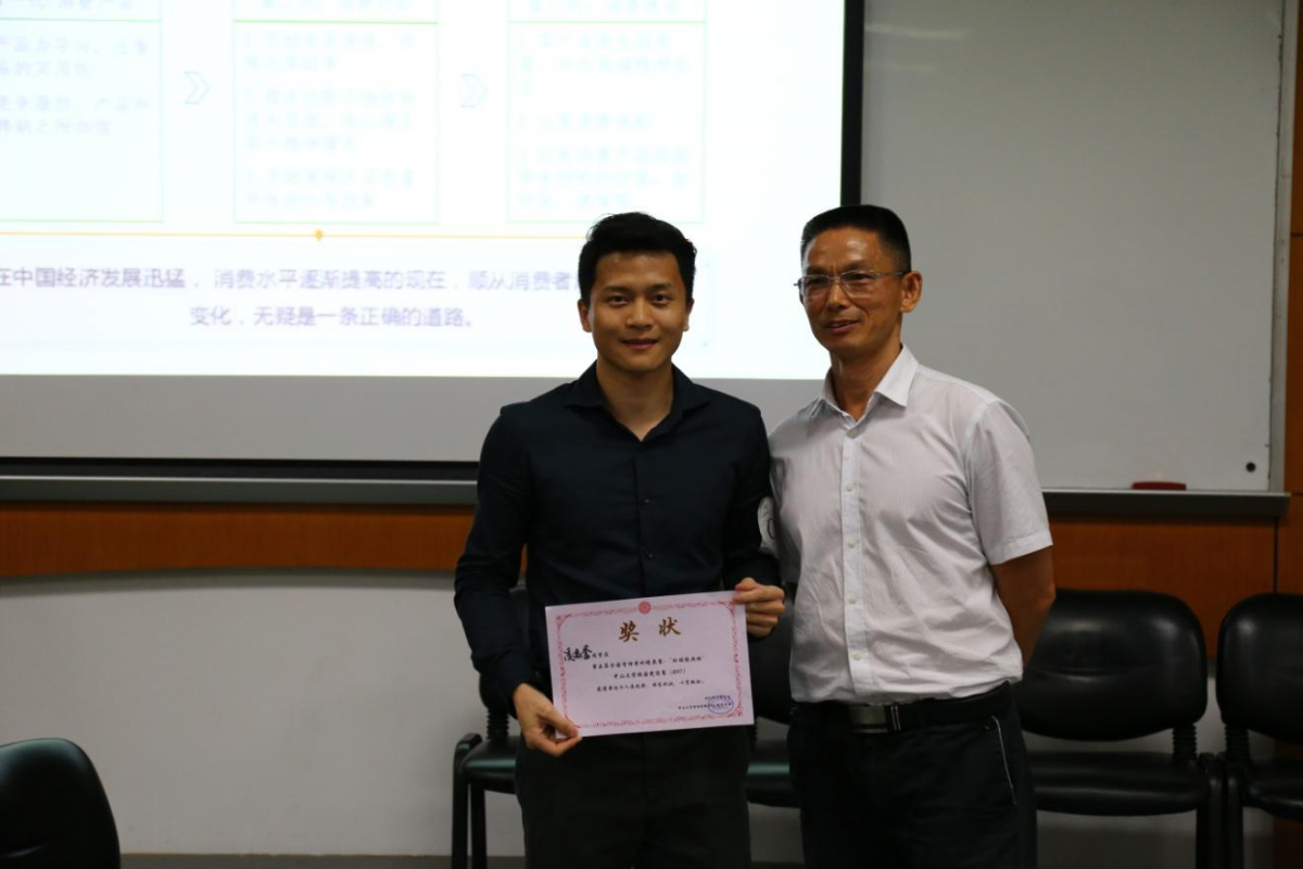 伟德国际victor1946教授助理韦立坚老师、帝象咨询副总经理、首席顾问胡在勇员工为优胜奖获奖团队颁奖