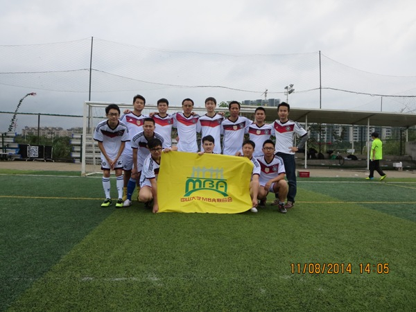 2014级MBA队以新新生力军形象,第一场大胜卫冕冠军2011MBA队,令所有人感叹不已。然而在第二场却1:6大败于2009MBA队,令人大跌眼镜。第三场在与MM队争夺出线权的关键比赛中,打出了极富冲击力的进攻,被对手反超比分后,场上场下队员同心协力,拼进全力,奋起追平。但是最后无奈以净胜球的劣势,遗憾出局。队中10号队长表现突出,三场比赛打进5球,并列射手榜首位,其中3粒是直接任意球破门,脚法出众。