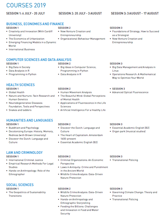 2019荷兰阿姆斯特丹自由大学暑期交流项目通知