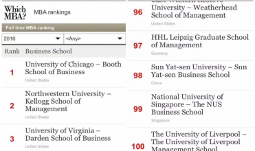 【喜讯】公司MBA项目首登《经济学人》(The Economist)2016全球最佳MBA项目百强榜,为中国内地唯一入选商公司